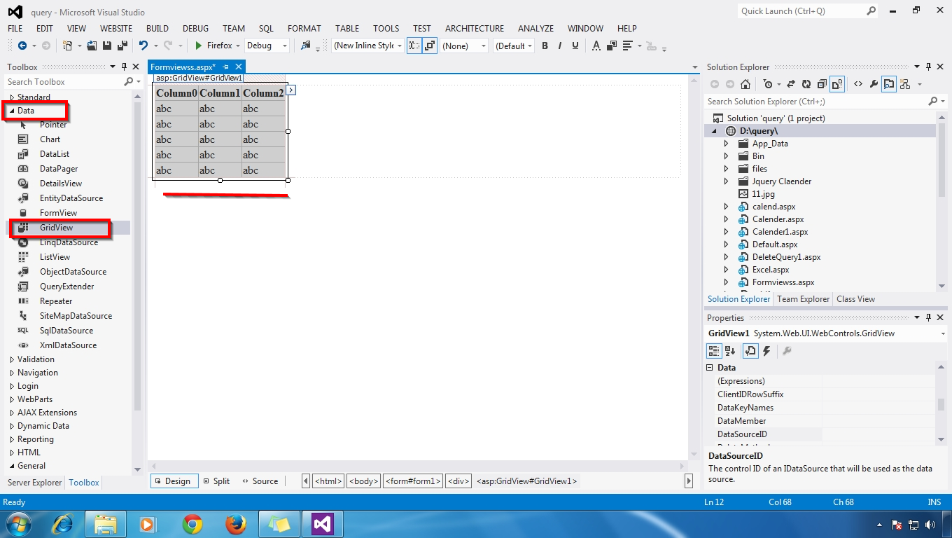 First - Add New WebForm - Select GridView from Data ToolBox