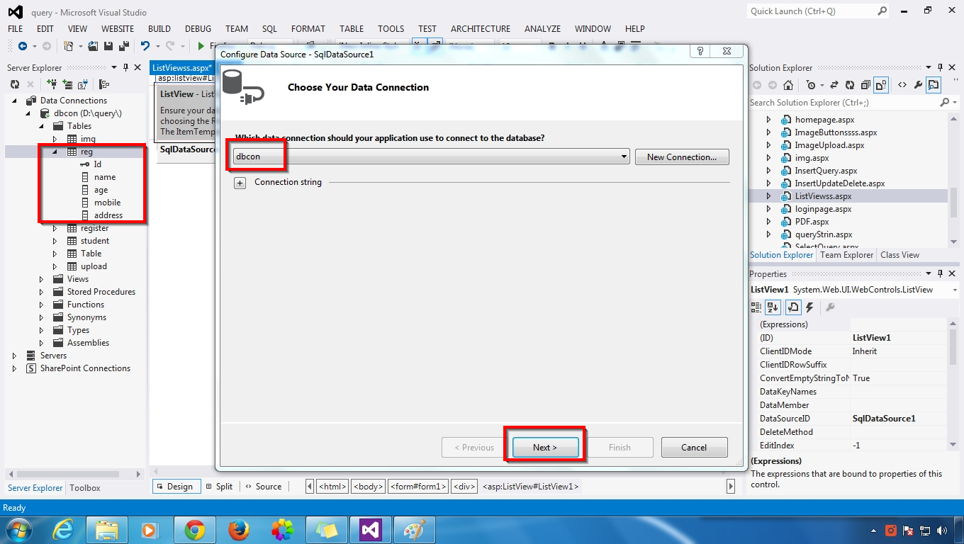 Next - F5 Run the Web Form - ListView Show Table(reg) Details